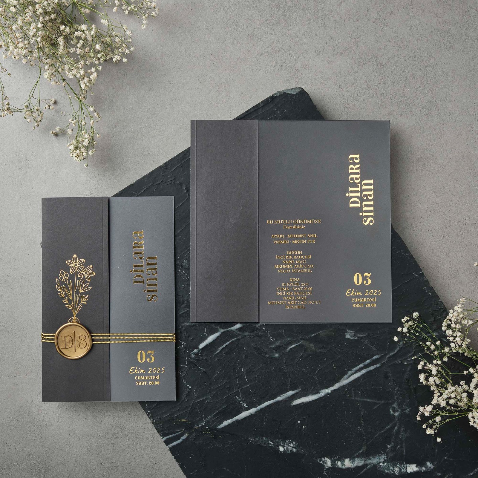 Davetiyede kullanılan mühür fiyata dahil değildir. ( Klişe Ücreti 240₺ Mühür Adet Fiyatı 4,80 ₺.)